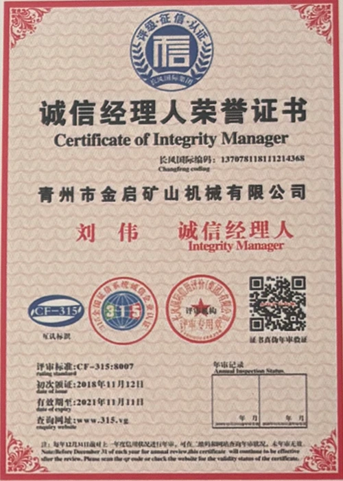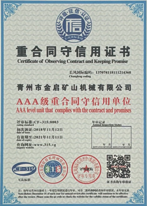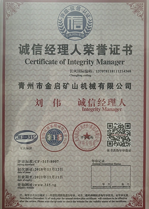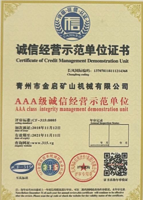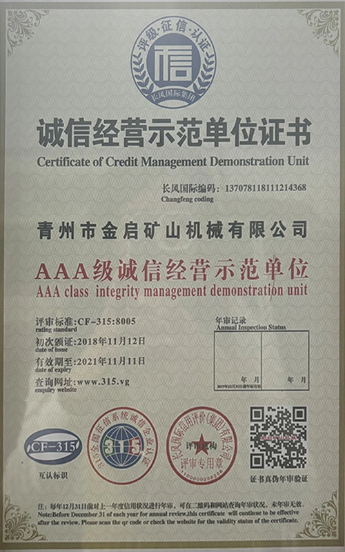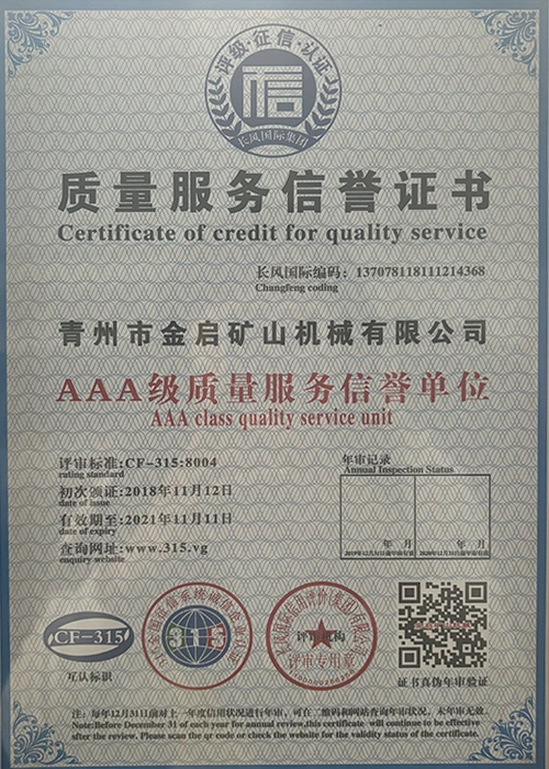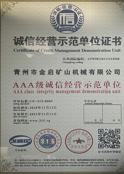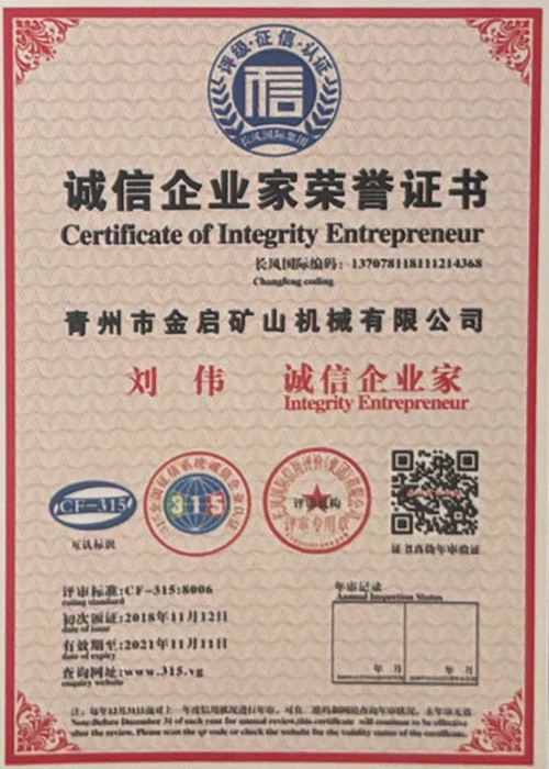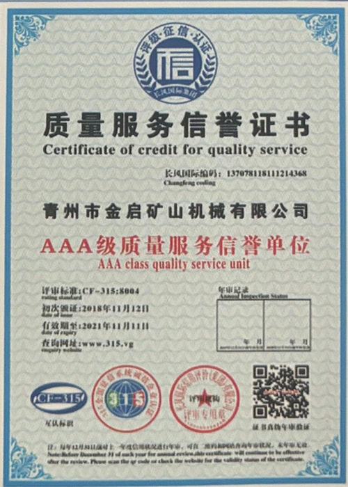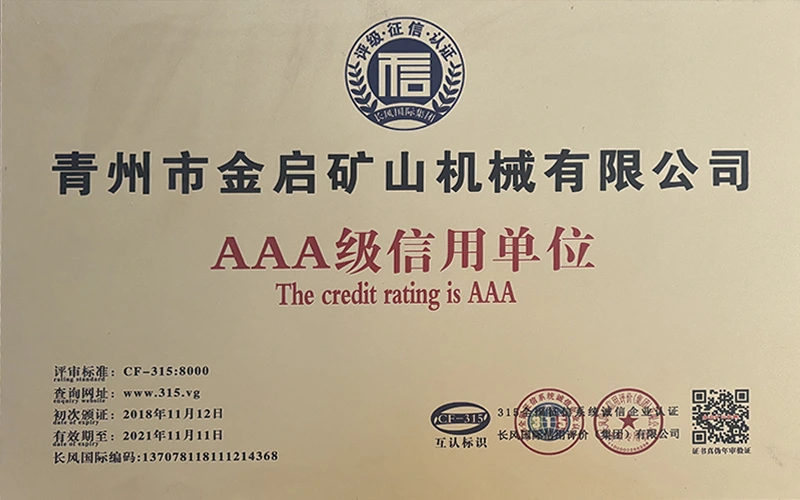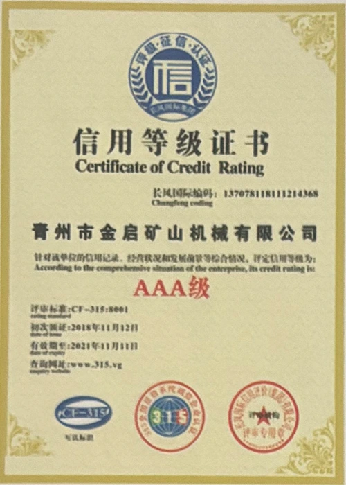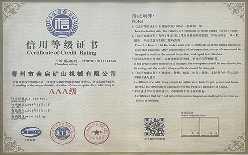 Dengan pengalaman mendalam selama bertahun-tahun dalam industri, bergantung pada kawalan kualiti yang ketat dan inovasi teknologi yang berterusan, syarikat telah memperoleh beberapa kelayakan berwibawa, pensijilan dan sijil paten, termasuk pensijilan sistem pengurusan kualiti ISO, pensijilan keselamatan produk perlombongan, serta pelbagai paten ciptaan dan paten model utiliti untuk pengoptimuman struktur peralatan dan penjimatan tenaga teknikal.